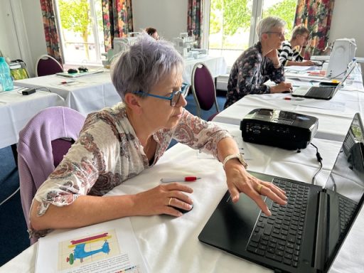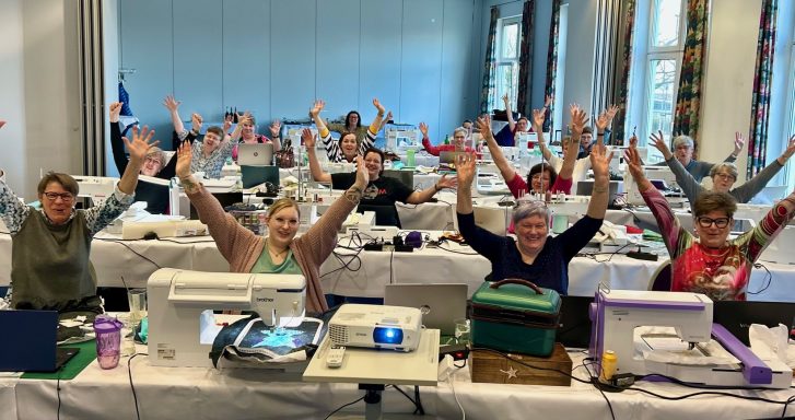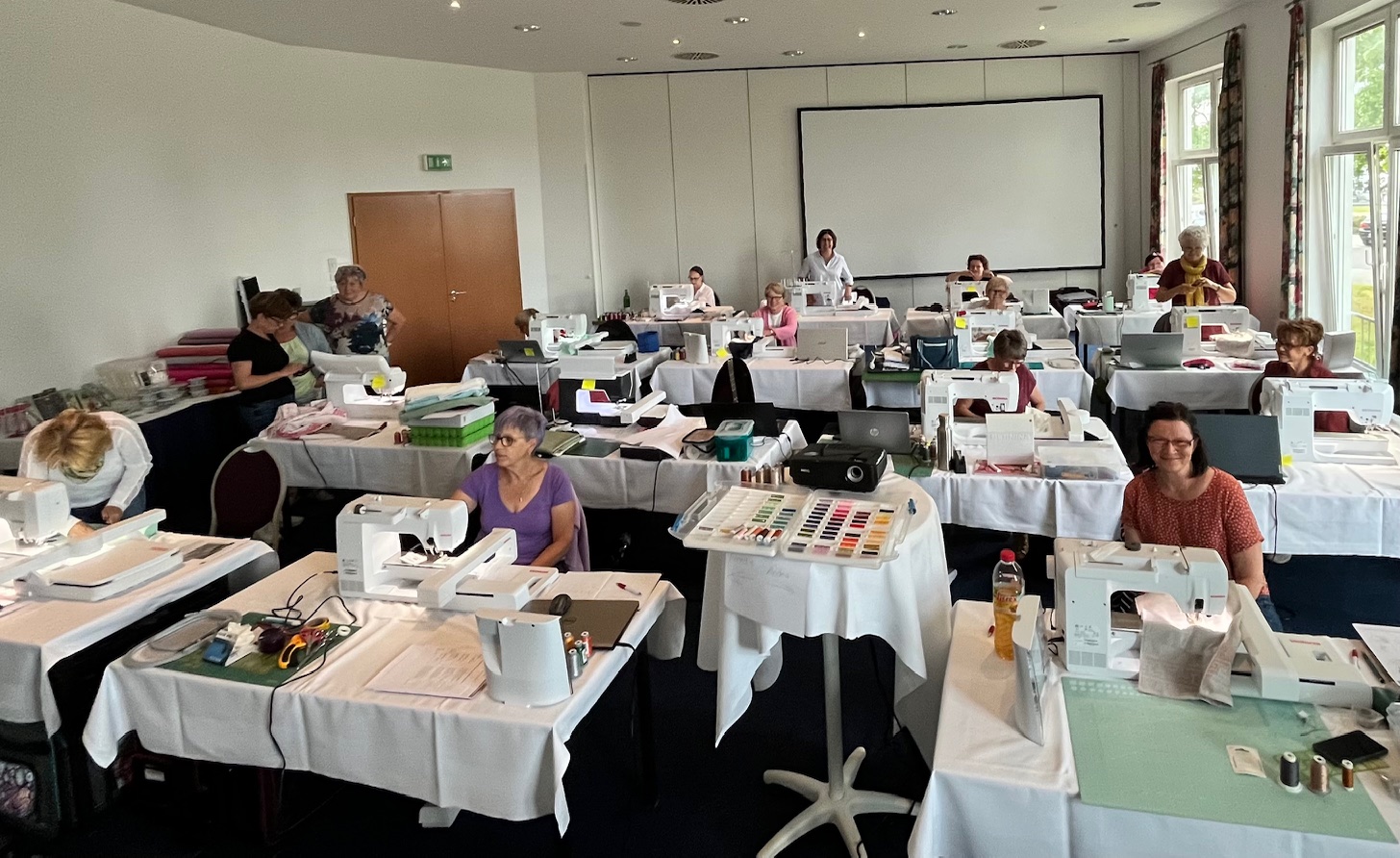 Ein Intensivkurs ganz nach dem Motto „Nix automatisch – wir können das selbst!“. Gemeinsam haben wir eine historische Nähmaschine Schritt für Schritt digitalisiert – mit viel Herzblut, Know-how und Liebe zum Detail. Aus dem entstandenen Motiv wurde anschließend eine ganz persönliche Schutzhülle für das Projektbuch – ein echtes Unikat und eine schöne Erinnerung an kreative Tage voller Austausch, Inspiration und gemeinsamer Stickleidenschaft.